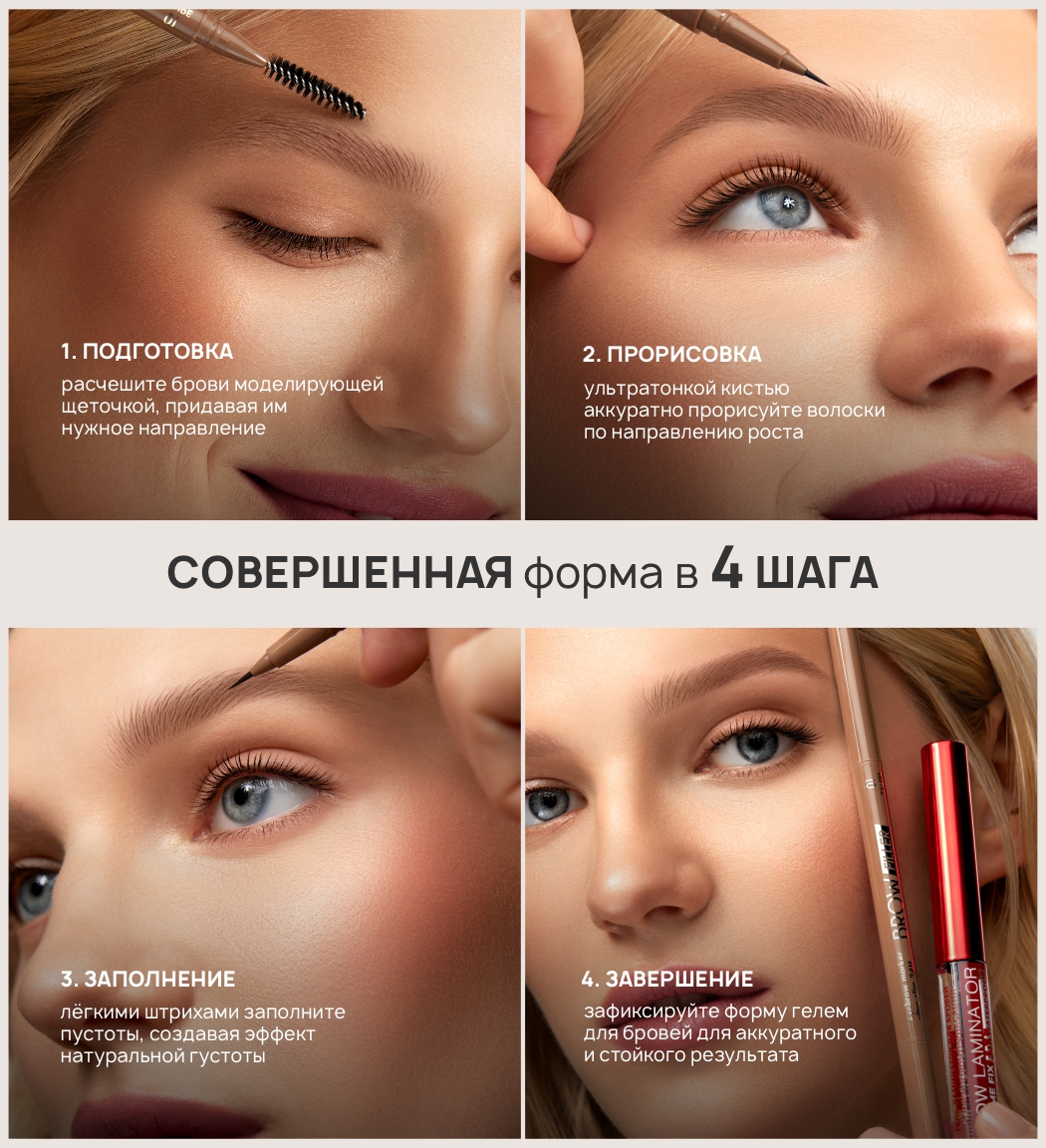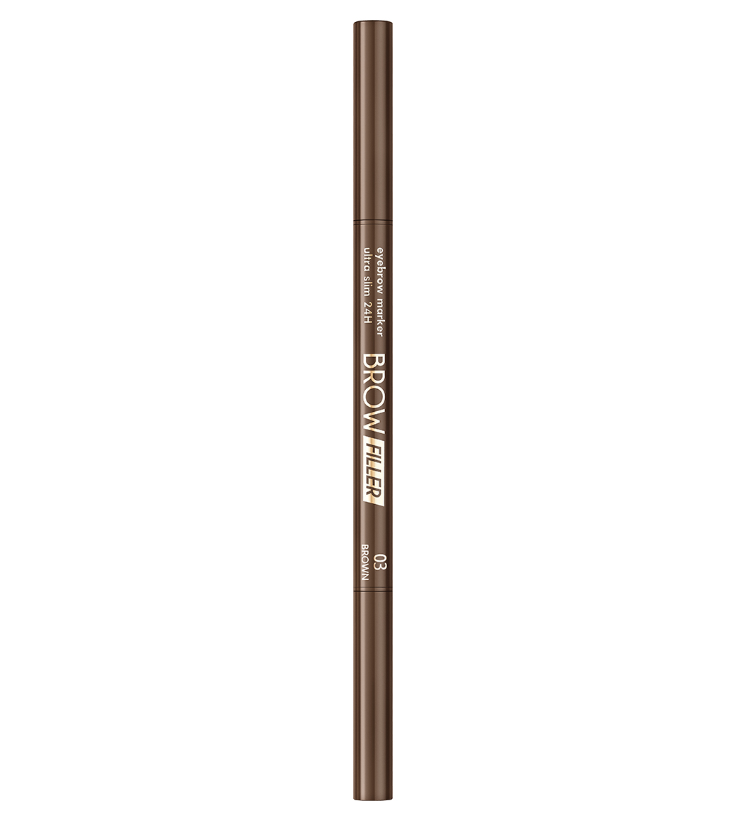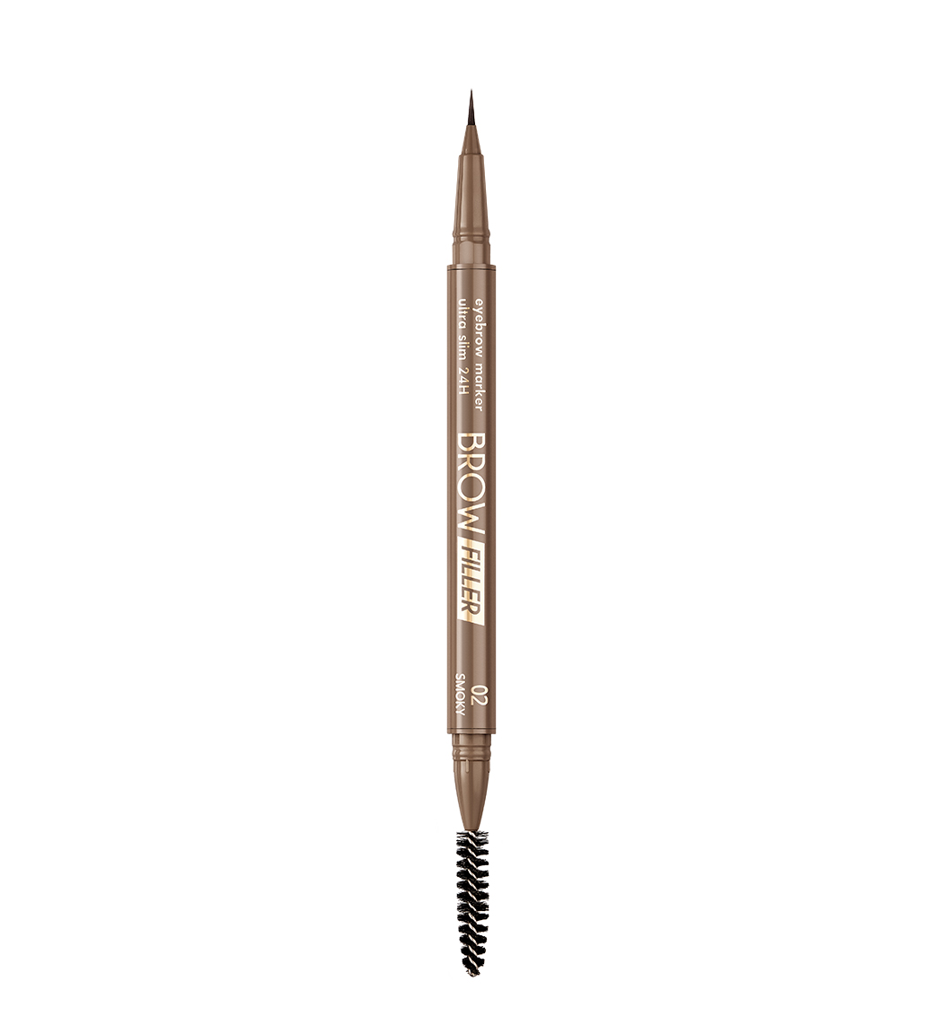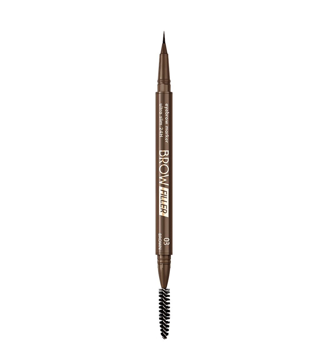 Маркер с ультратонкой кисточкой максимально точно прорисовывает недостающие волоски, заполняет пустоты, создает эффект густых натуральных бровей.